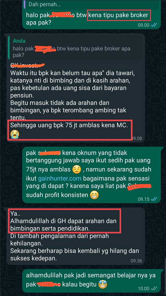 6.Memberikan layanan edukasi forex secara private melalui Gain Hunter