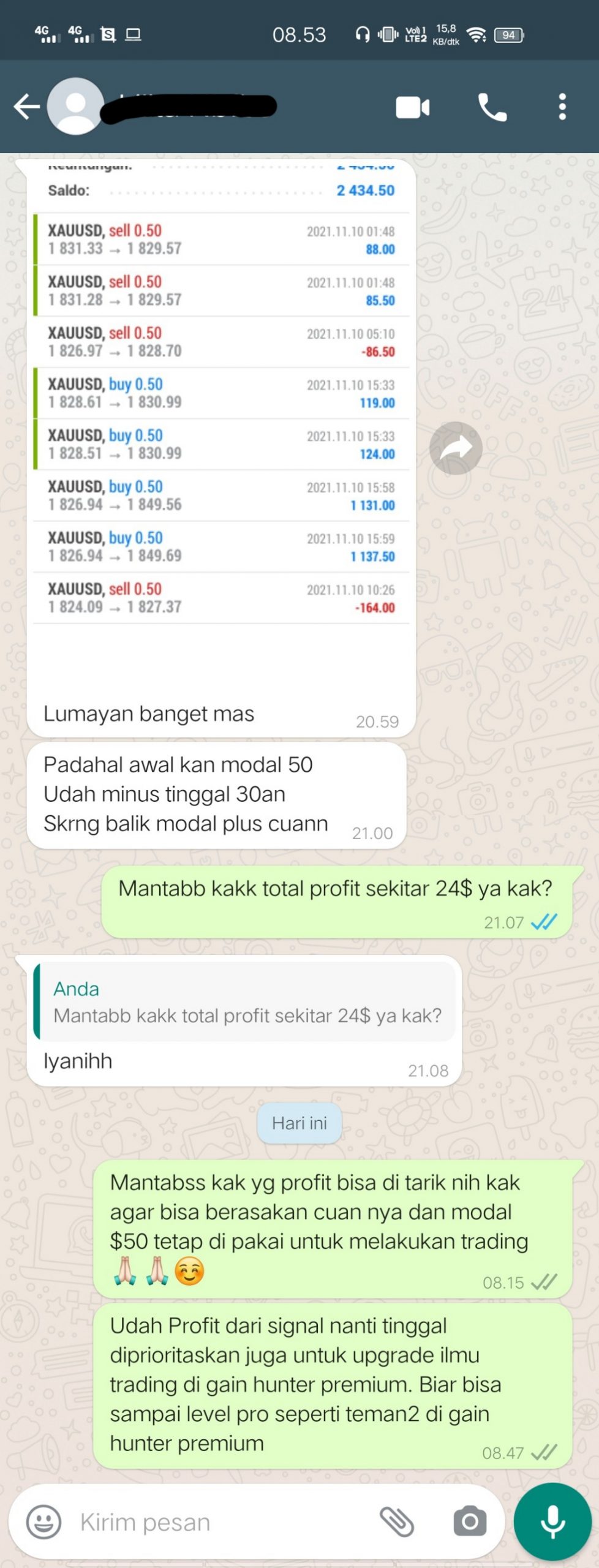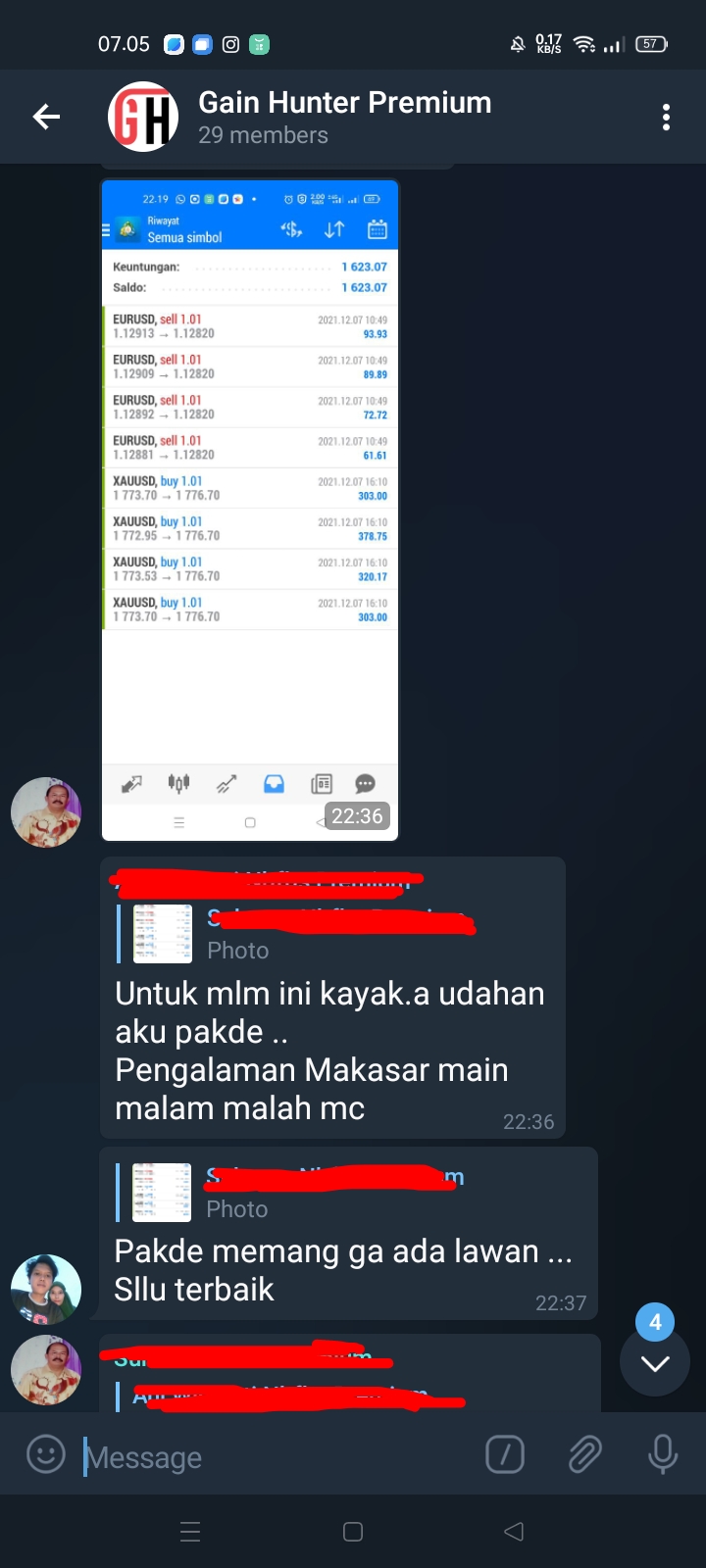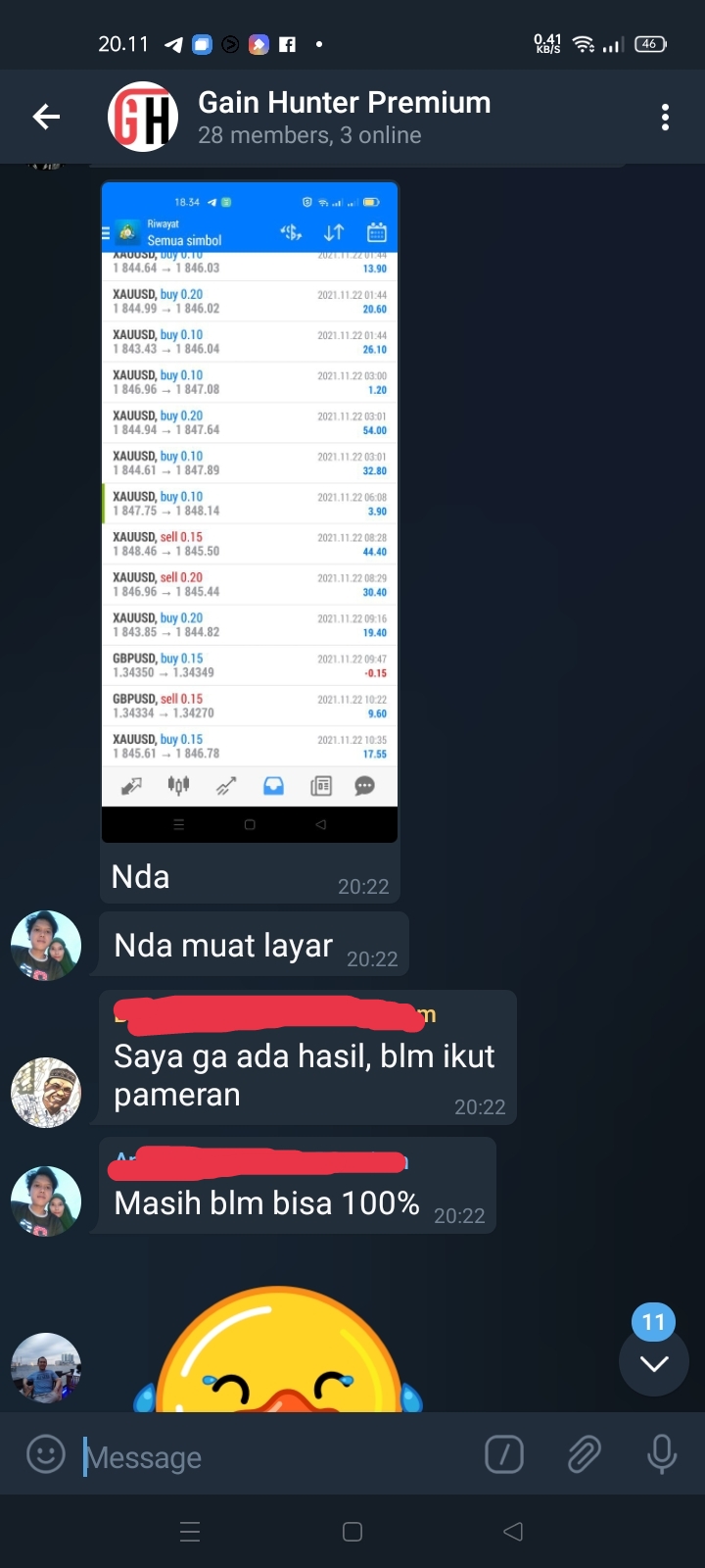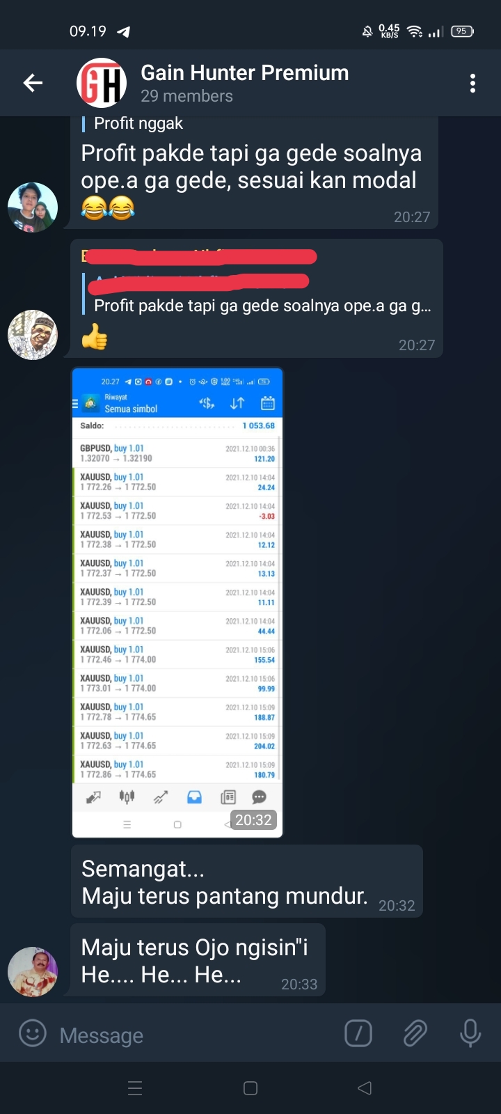 Saya liatin group Gain Hunter Mastery yang isinya adalah trader waras semua, bukan trader abal-abal. Ingat, trading forex tanpa ilmu yang sudah teruji adalah awal dari kehancuran finansial.